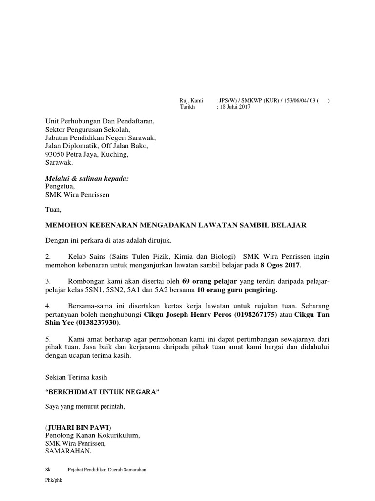 Surat Memohon Kebenaran Mengadakan Lawatan Sambil Belajar Pdf